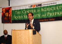 The new Center will serve as a focal point for several key initiatives that will assist the nation in its efforts to protect agriculture and the food supply from terrorist threats. Agriculture and the food supply are part of the nation's critical infrastructure and have been identified as a key sector that is vulnerable to terrorist threats. CAFSP will house the college's national training program that is being developed for the U.S. Department of Homeland Security (DHS) on agriculture and food vulnerability assessment. Development of this outreach training program is being funded by a $2 million grant the College of Veterinary Medicine received last fall from DHS. The training program will provide industry and government officials at the state, county, and local levels across the country with tools to prevent and deter terrorist acts that target the agricultural and food sector. Facilities and operations considered vulnerable can reduce or eliminate risk through appropriate planning and training. The training program will be available at no cost to local communities later this fall.